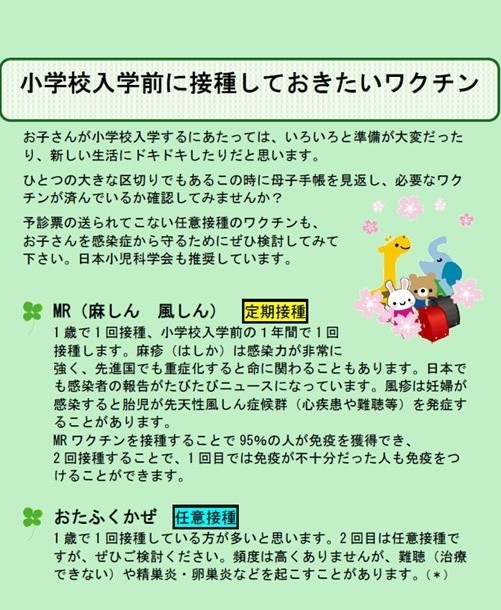 予防接種、乳幼児健診時間は15時30分まで、午後の一般診療は15時30分から開始しますのでご注意ください。