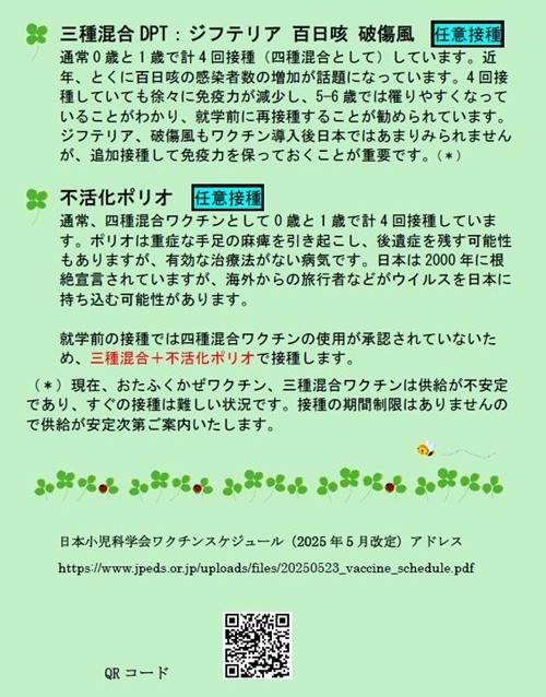 費用:4,000円(税込み)/回 練馬区小児インフルエンザ助成(6カ月~小学校6年生、2,000円/回 2回まで)あり